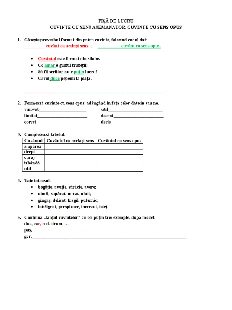 Căută Cuvintele Cu Sens Asemănător Docx