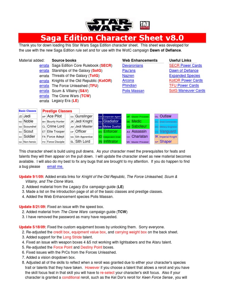 Copy Of Saga Edition Character Sheet V8 0 Reconnaissance Jedi