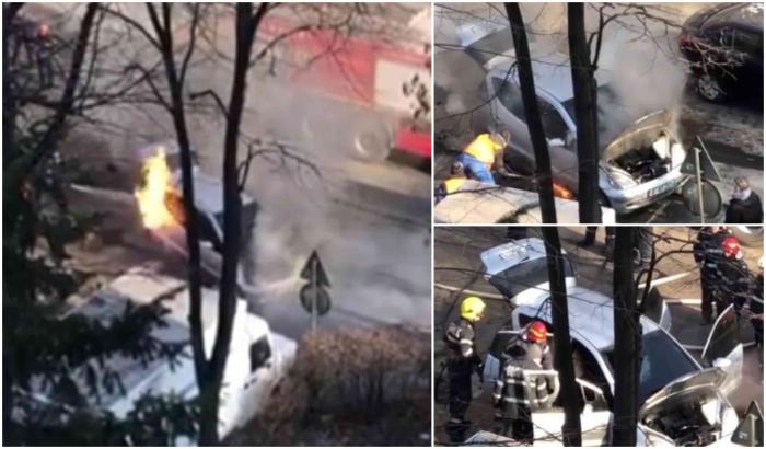 Masină Incendiată In Bucuresti De Muncitori Care Decopertau Trotuar