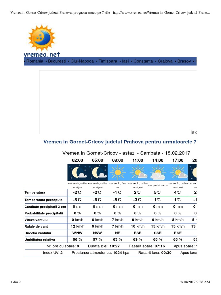 Vremea In Gornet Cricov Judetul Prahova Prognoza Meteo Pe 7 Zile