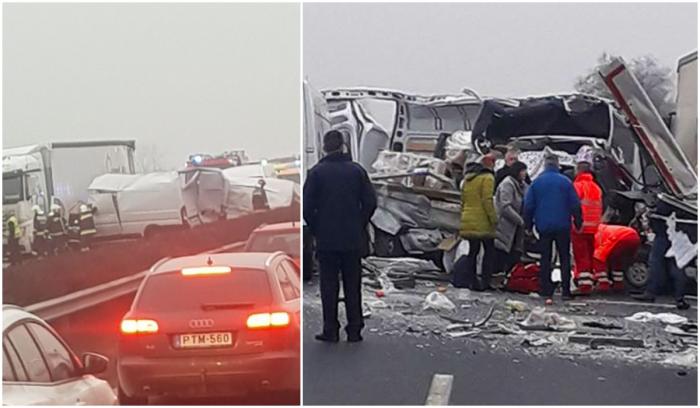 Dubă Romanească Făcută Praf In Ungaria Pe Autostradă